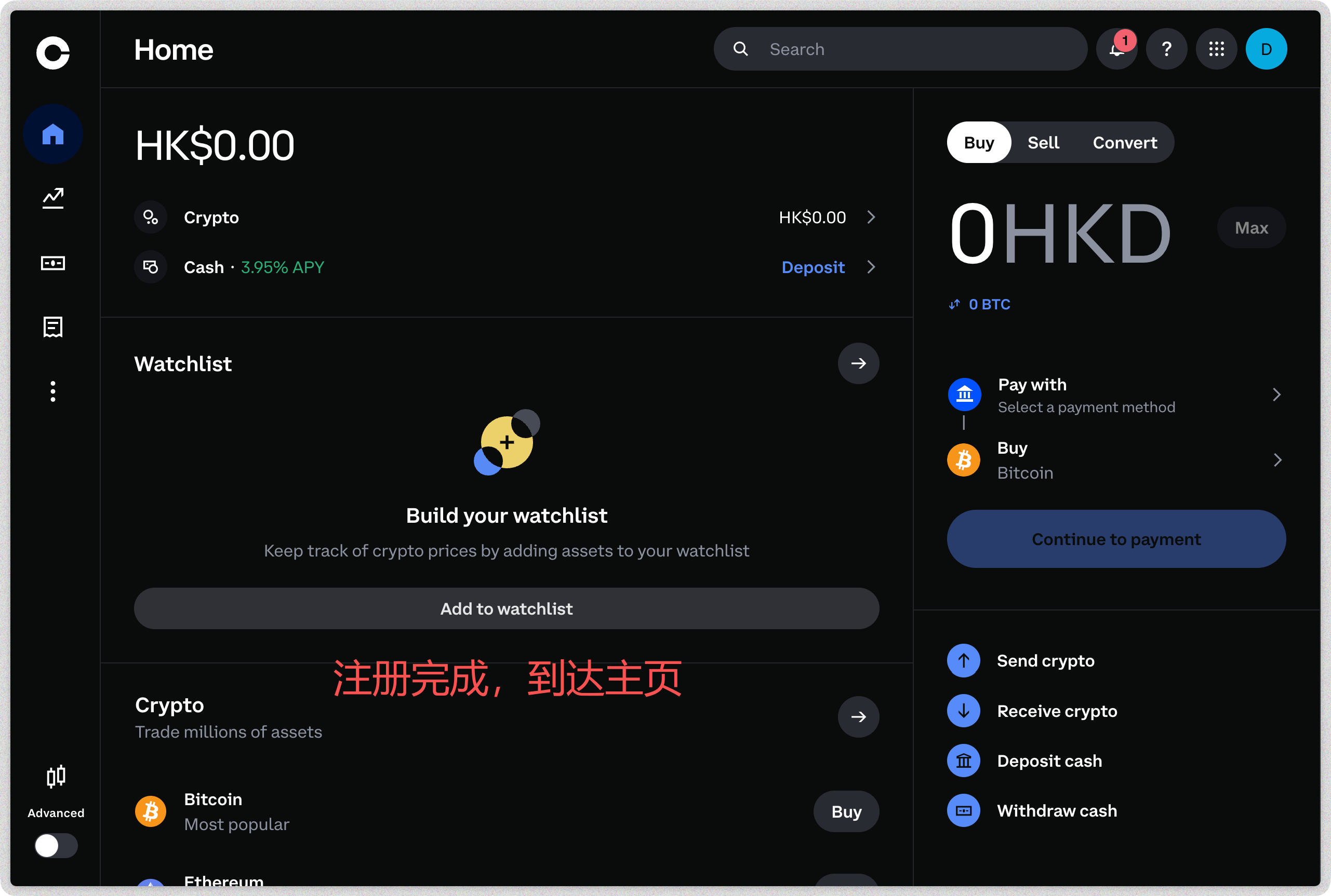 Coinbase-香港区账户开通教程 Post author:Henry Li Post published:2026年3月19日 Post category:coinbase 返回主页 注册Coinbase港区,需要使用香港的节点IP;点击红色链接注册,能参与新人活动。Coinbase只能入金法币或USDC,现金账户持有USDC,自动会获取与美债相同的收益。更多平台、账户需要协助注册点击