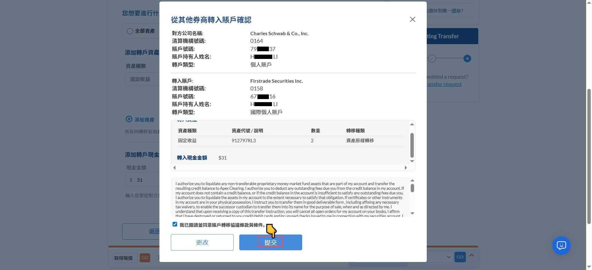 在第一证券wap端申请,将嘉信证券的持仓转入 Post author:Henry Li Post published:2026年1月25日 Post category:第一证券 Post comments:0评论 返回主页 转仓的金融产品,需要双方都支持,不然转仓会失败嘉信证券部分转出、转入仓,均不收费更多平台、账户需要协助注册点击 你可能也喜欢 在第一证券App端申请,将盈透证券的持仓股票/ETF转入 2026年1月14日 发表回复CommentEnter your name or username to comment Enter your email address to comment Enter your website URL (optional)