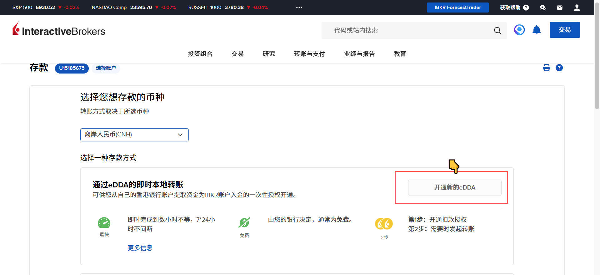 盈透证券-绑定香港银行账户,通过EDDA实时入金 Post author:Henry Li Post published:2026年1月11日 Post category:盈透证券 Post comments:0评论 返回主页 点击链接申请盈透证券,可以获得受邀礼,每个年度受邀礼都是不同的。2️⃣仅有香港银行,使用港币、人民币才能与盈透绑定EDDA,做到即时入金3️⃣更多平台、账户需要协助注册点击 你可能也喜欢 盈透证券-收到税务更正邮件怎么办? 2026年1月8日 盈透证券-创建模拟交易账户 2025年12月24日 盈透证券-修改客户画像,开启期权、期货、复杂杠杆产品交易 2025年12月3日 发表回复 取消回复CommentEnter your name or username to comment Enter your email address to comment Enter your website URL (optional) 在此浏览器中保存我的显示名称、邮箱地址和网站地址,以便下次评论时使用。