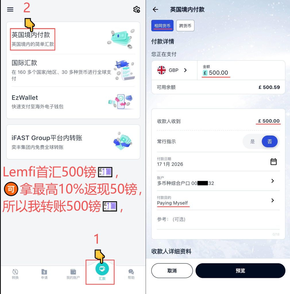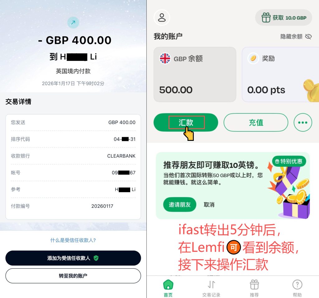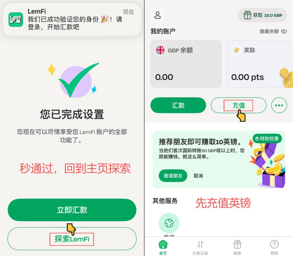 Lemfi注册、充值、汇款教程,获得最高50英镑新人奖励 Post author:Henry Li Post published:2026年1月18日 Post category:lemfi Post comments:0评论 返回主页 Lemfi注册,需使用高纯度的英国IP地址,建议用英国电话卡的原生IP流量。需使用邀请码:HAILBTEB,才能获得新人首汇10%返现奖励;点击Lemfi返现活动官网链接,查看规则。更多平台、账户需要协助注册点击 发表回复CommentEnter your name or username to comment Enter your email address to comment Enter your website URL (optional)