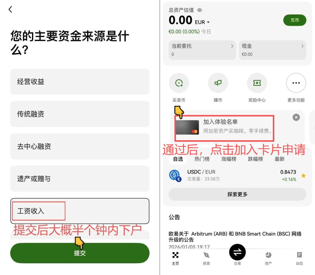 OKXEU-欧易欧洲区注册教程,拥有欧洲同名IBAN Post author:Henry Li Post published:2026年1月21日 Post category:OKX Post comments:0评论 返回主页 OKX账户只能开一个,国区需要注销原有账户,才能开欧洲区;OKX欧洲要用USDC充值,不能使用USDTOKX欧洲区拥有同名IBAN,支持欧元免费出入金,秒到填邀请码60004145或点击邀请🔗链接注册,才能参与欧洲新用户奖励100欧的活动,具体点击官网链接查看4️⃣手机的时间需要调整成欧洲德国时区,扫脸认证才不会报错。5️⃣更多平台、账户需要协助注册点击 你可能也喜欢 OKXEU-欧易欧洲区万事达卡的申办,充值,15%返现活动详解 2026年1月28日 发表回复CommentEnter your name or username to comment Enter your email address to comment Enter your website URL (optional)