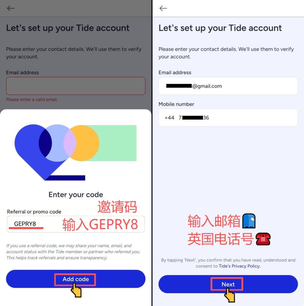 1️⃣点击红色邀请链接🔗,跳转到邀请页注册;或通过App注册时填写邀请码GEPRY8,可参与新人活动。目前新人活动是下号90天内,卡消费满500英镑,奖励100英镑。