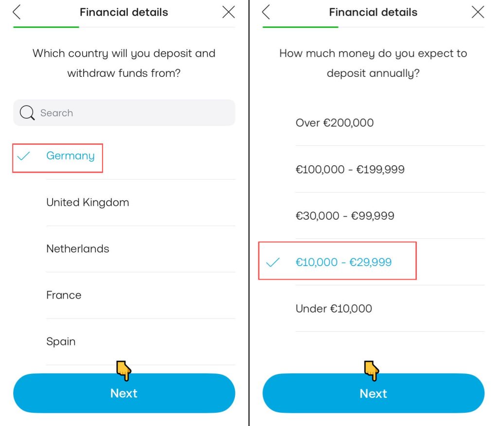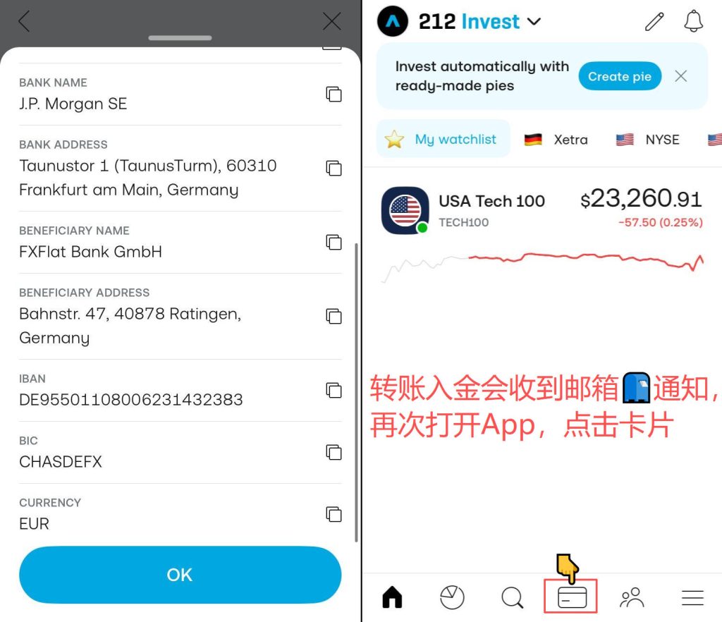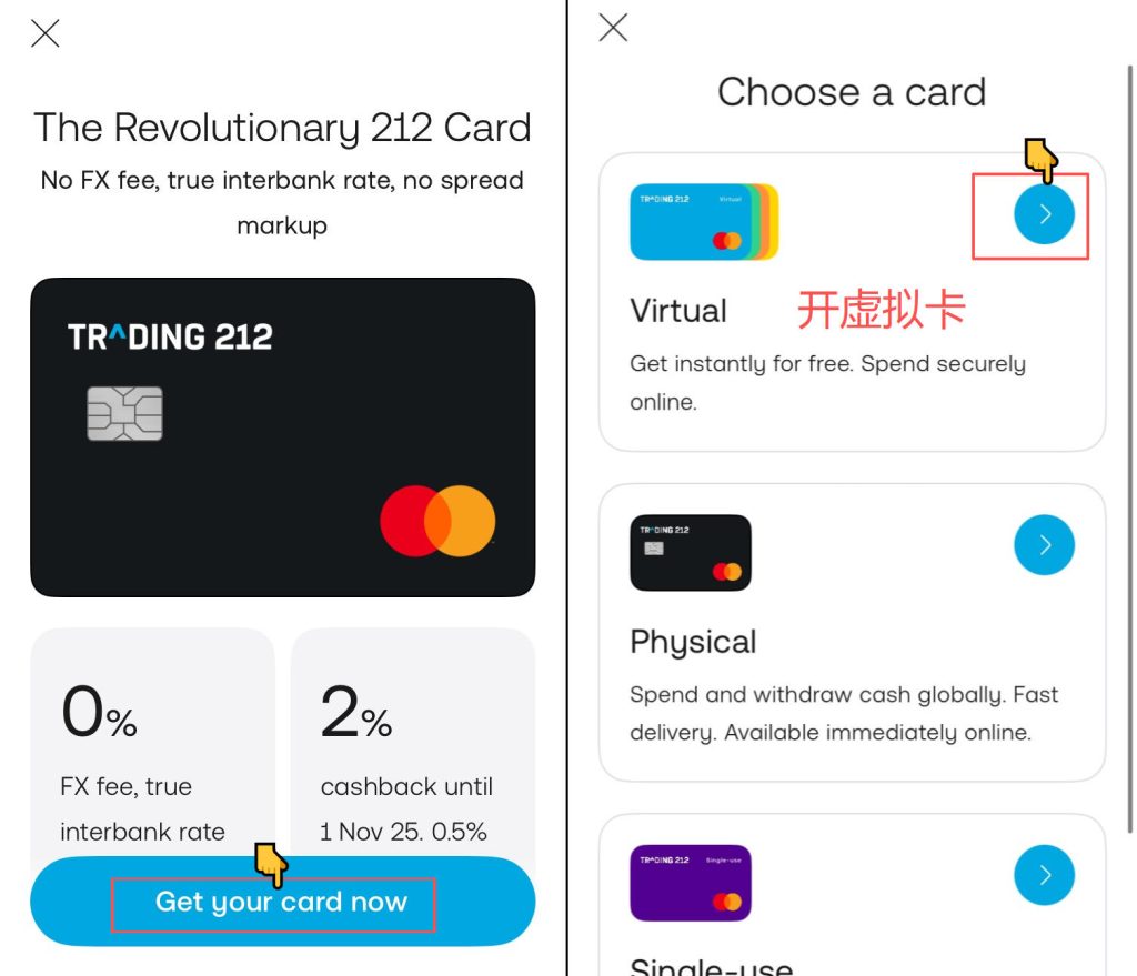 trading212证券-德国区开户、开消费卡教程 Post author:Henry Li Post published:2026年1月2日 Post category:trading212 Post comments:0评论 返回主页 欧洲区trading212,欧元转账入金免费,可开无数张一次性Master消费卡卡每次消费会返现2%的欧元到指定的股票,每月上限15欧元;超过15欧元,返现变为0.5%点邀请链接注册,在2026年1月20号前消费3笔5欧元以上,会有25欧元返现,仅有5个名额注册需使用欧洲IP,并将手机定位更改为德国境内,最好是填写的地址附近;更多平台、账户需要协助注册点击5️⃣现暂不支持中国护照进行认证 发表回复 取消回复CommentEnter your name or username to comment Enter your email address to comment Enter your website URL (optional) 在此浏览器中保存我的显示名称、邮箱地址和网站地址,以便下次评论时使用。