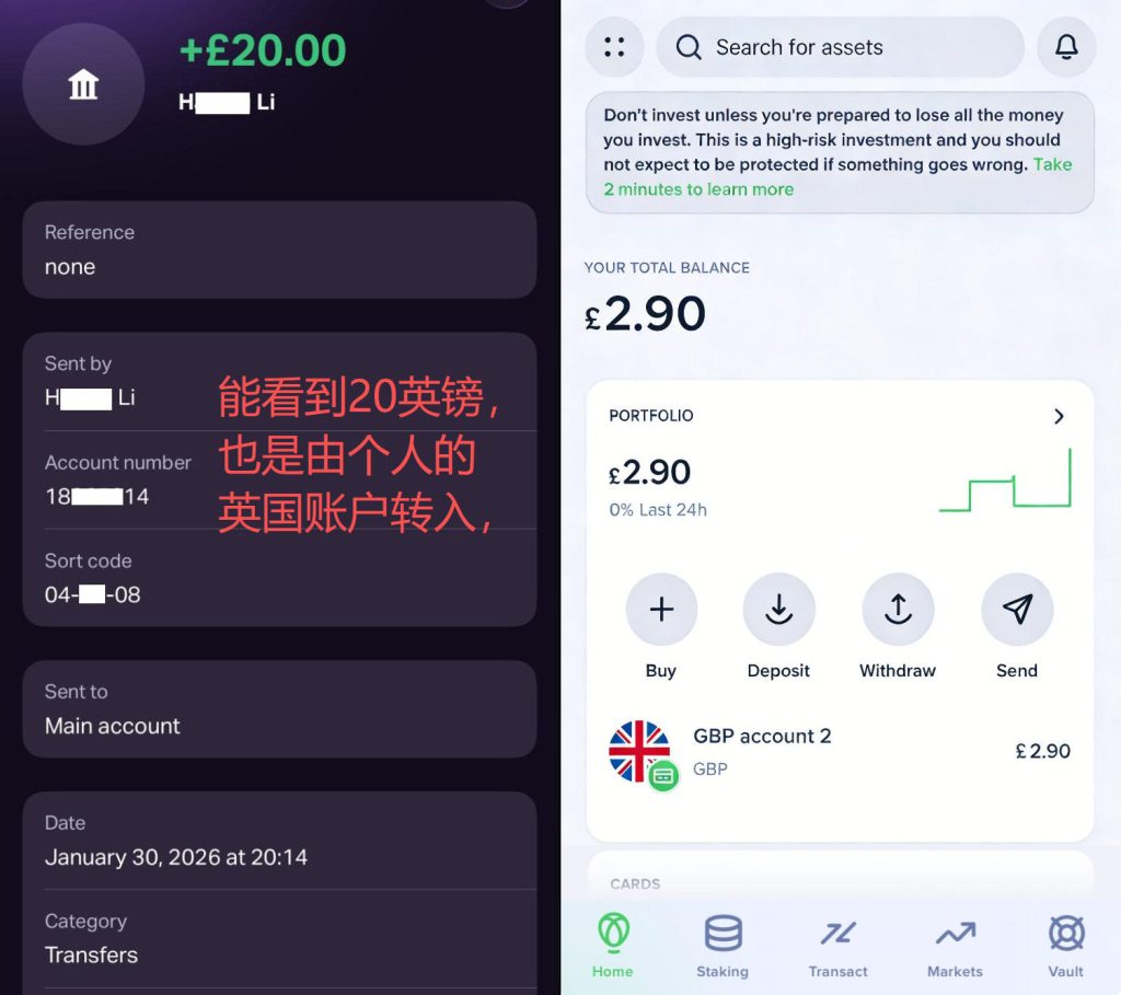 uphold-英镑的转入、转出教程 Post author:Henry Li Post published:2026年2月5日 Post category:uphold Post comments:0评论 返回主页 uphold交易所有个人的英镑IBNA,与英国本地账户互转免费 2️⃣开VPN打开不了uphold,推荐使用中国移动海外版本CMlink esim的无忧中国行套餐,点击查看教程。 更多平台、账户需要协助注册点击 你可能也喜欢 uphold-充值USDC换成英镑教程 2026年2月3日 uphold-如何申请uphold消费卡?1%消费返现的实测与损耗 2026年2月4日 Uphold-满血版英国区交易所注册详解 2026年1月31日 发表回复CommentEnter your name or username to comment Enter your email address to comment Enter your website URL (optional)