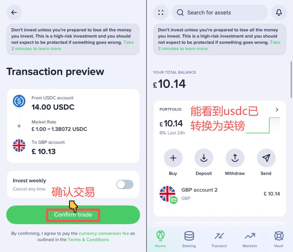 uphold-充值USDC换成英镑教程 Post author:Henry Li Post published:2026年2月3日 Post category:uphold Post comments:0评论 返回主页 给欧洲区交易所转虚拟币,都需要核实转账人信息,防洗钱。注册币安交易所🉑点击跳转到教程2️⃣uphold不能使用VPN登录,日常登录可以用中国移动海外版CMlink的无忧中国行套餐,流量有效期180天,点击🉑跳转查看申购教程。更多平台、账户需要协助注册点击 你可能也喜欢 uphold-如何申请uphold消费卡?1%消费返现的实测与损耗 2026年2月4日 Uphold-满血版英国区交易所注册详解 2026年1月31日 uphold-英镑的转入、转出教程 2026年2月5日 发表回复CommentEnter your name or username to comment Enter your email address to comment Enter your website URL (optional)