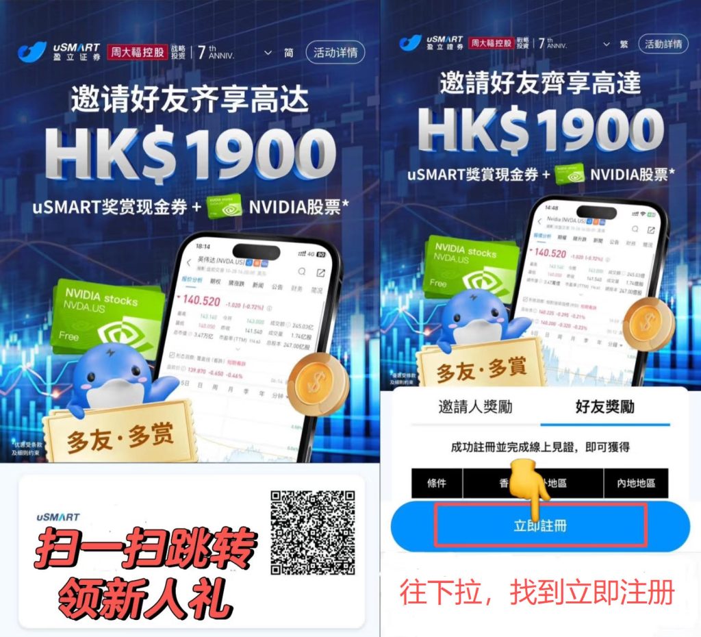 2️⃣注册点击链接🔗、扫描下方二维码或填邀请码vxbi7,可以获得受邀🎁,受邀🎁会随盈立证券运营计划而改变,但有填写都可以参加新人活动。
