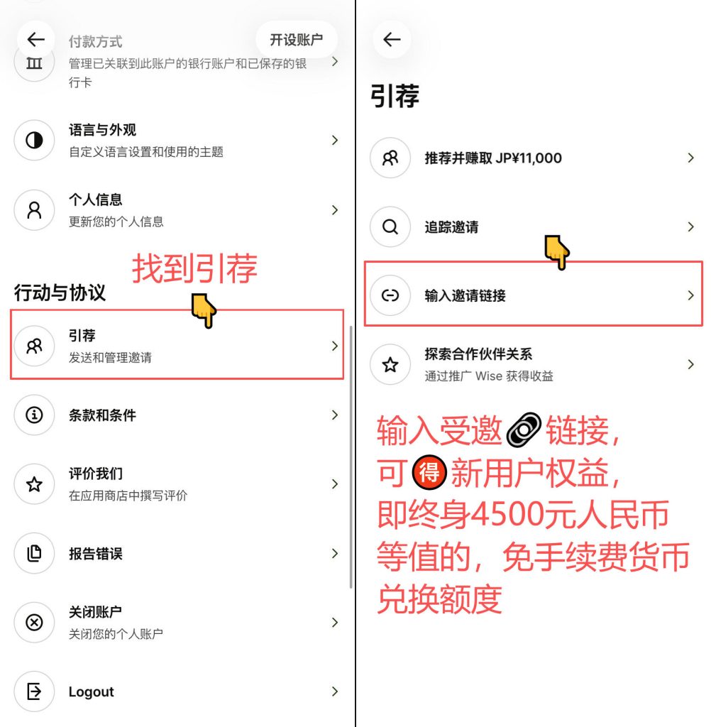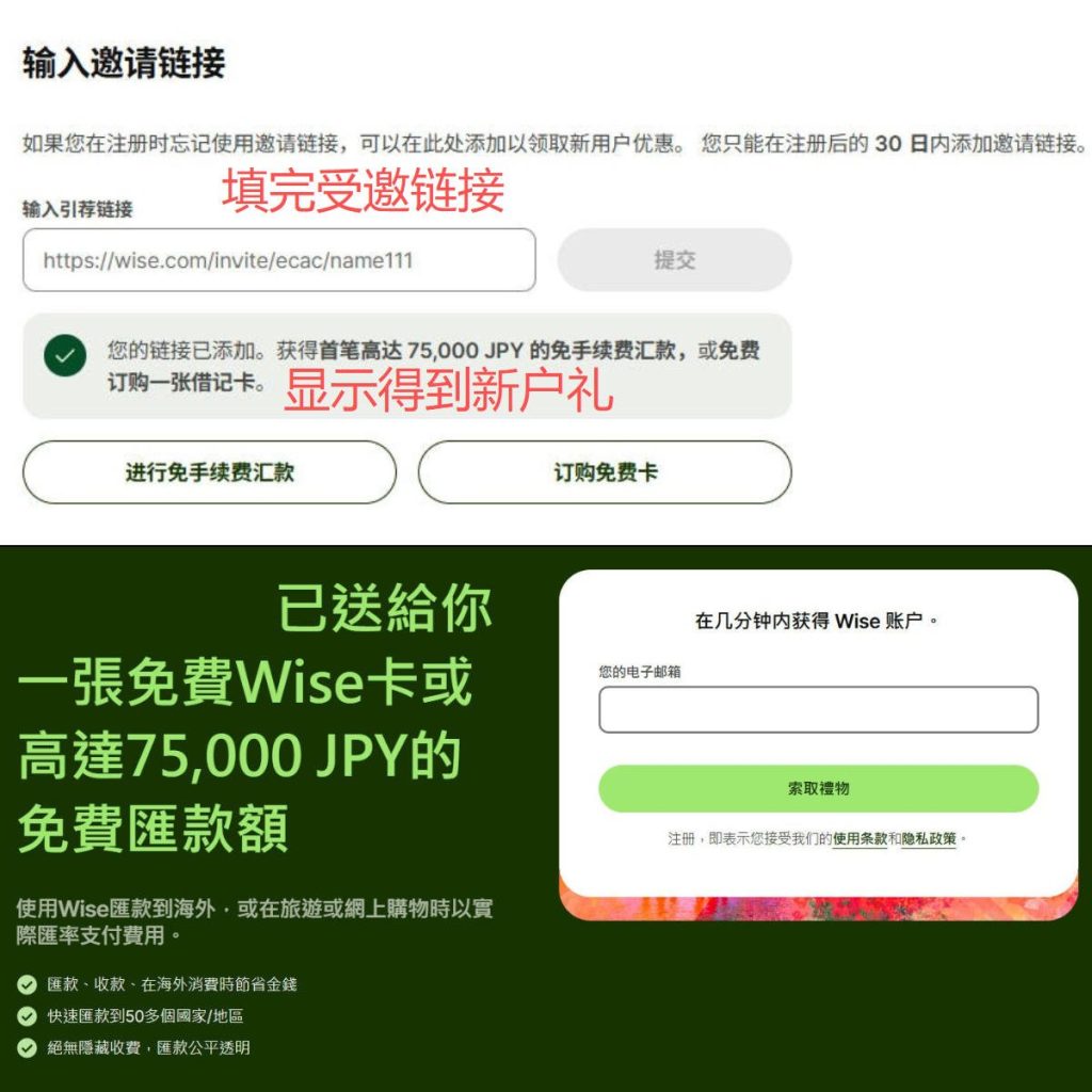 wise-补填邀请链接 Post author:Henry Li Post published:2025年12月27日 Post category:wise Post comments:0评论 返回主页 wise注册教程点击跳转未从邀请链接注册,可按流程在30天内,补登记邀请链接 https://wise.com/invite/ihpc/haihuangl1,获得终身4500元人民币等值的,免手续费货币兑换额度wise或其他平台需要协助注册点击 你可能也喜欢 WISE-GB开头的HKD旧账户可升级为香港新展银行账户 2025年12月2日 wise-如何给wise的香港星展银行账户转账 2025年12月8日 wise注册激活 2025年11月27日 发表回复 取消回复CommentEnter your name or username to comment Enter your email address to comment Enter your website URL (optional) 在此浏览器中保存我的显示名称、邮箱地址和网站地址,以便下次评论时使用。