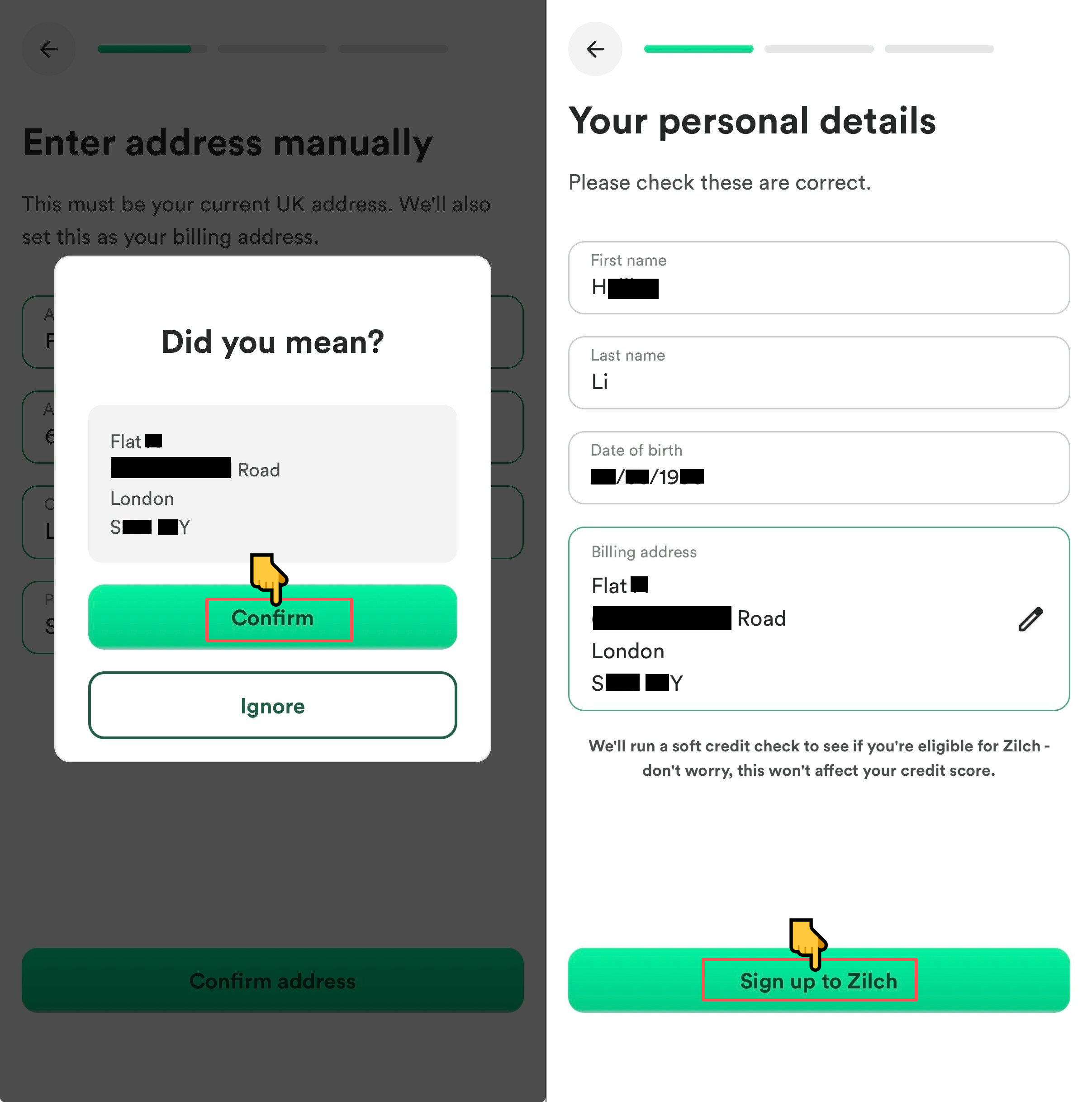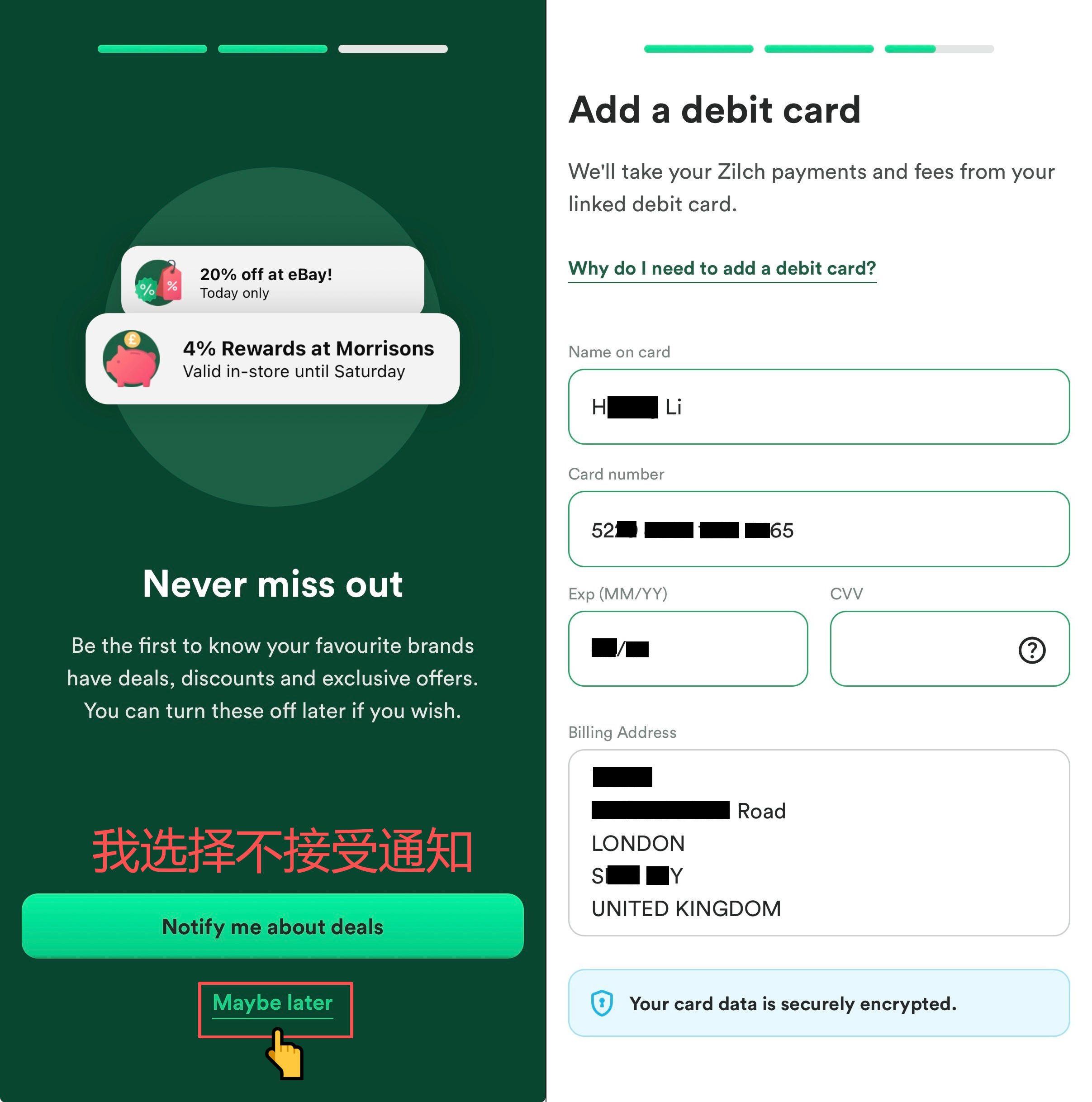 如何注册、激活英国VISA分期卡-Zilch Post author:Henry Li Post published:2026年3月23日 Post category:Zilch 返回主页 注册时需使用英国的IP,需要有英国信用分,需使用信用地址。如何养英国信用,点击红色链接查看 Zilch是英国本地英镑币种卡,消费自带0.5%的返现,消费外币会有2.5%的外币转换费 通过邀请链接注册Zlich,双方得5英镑;更多平台、账户需要协助注册点击
